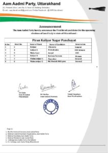 देहरादून आम आदमी पार्टी ने आज उत्तराखण्ड नगर निकाय चुनावों को लेकर प्रदेश के हरिद्वार,देहरादून,देहरादून महानगर,कीर्तिनगर,डोईवाला, सहित विभिन्न जनपदों के...