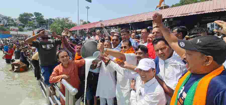 लगातार तीसरी बार पीएम पद की शपथ लेने पर मंत्री प्रेमचन्द्र अग्रवाल ने कार्यकर्ताओं के साथ किया गंगा में दुग्धाभिषेक