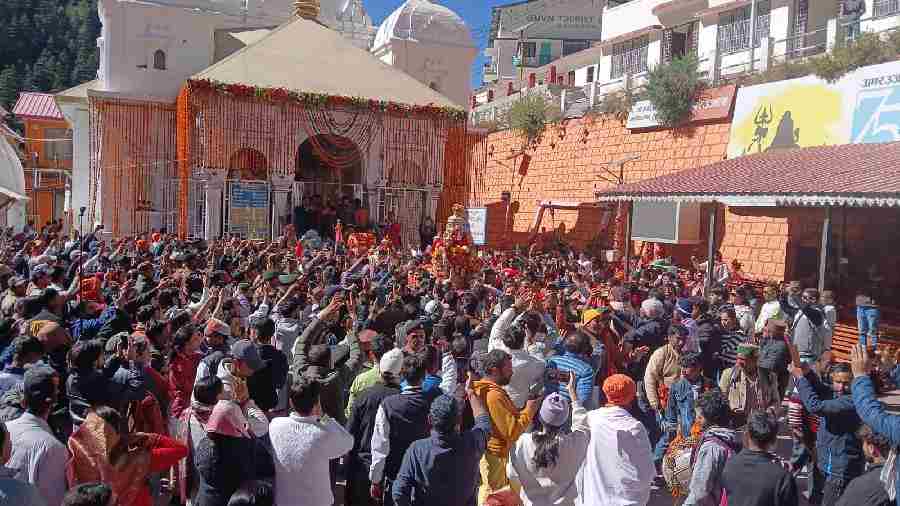 गंगोत्री धाम के कपाट आज अन्नकूट के पावन पर्व पर शीतकाल के लिए विधि विधान से 12 बजकर 14 मिनट पर बन्द कर दिए गए । देश विदेश से श्रद्धालु गंगोत्री धाम में आज के साक्षी बने।कपाट बंद की प्रक्रिया सुबह चार बजे से शुरू हो गई। इस दौरान विशेष आरती व पूजन अर्चना की गई। इसके बाद मां भगवती गंगा के स्वर्ण विग्रह को उनकी डोली में विराजित किया गया । साथ ही चांदी के अखंड दीपक में छह माह के लिए घी-तेल आदि डाला गया। और ठीक 12:14 मिनट पर गंगोत्री धाम के कपाट देश विदेश के श्रद्धालु के अगले 6माह के लिए विधि विधान से बंद कर दिए ।माँ गंगा की उत्सव डोली सेना बेंड की अगवाई में मुखवा गाव के लिए रवाना हुई, आज गंगा की उत्सव डोली मार्कण्डे में देवी मंदिर में रात्रि विश्राम करेगी और कल दोपहर तक शीतकालीन मन्दिर मुखवा गद्दी स्थल पहुँचेगी। अब देश विदेश के आम श्रद्धालु मुखीमठ में दर्शन कर पाएंगे। उत्सव डोली की इस यात्रा में श्रदालुओं में बड़ा उत्साह नजर आया।