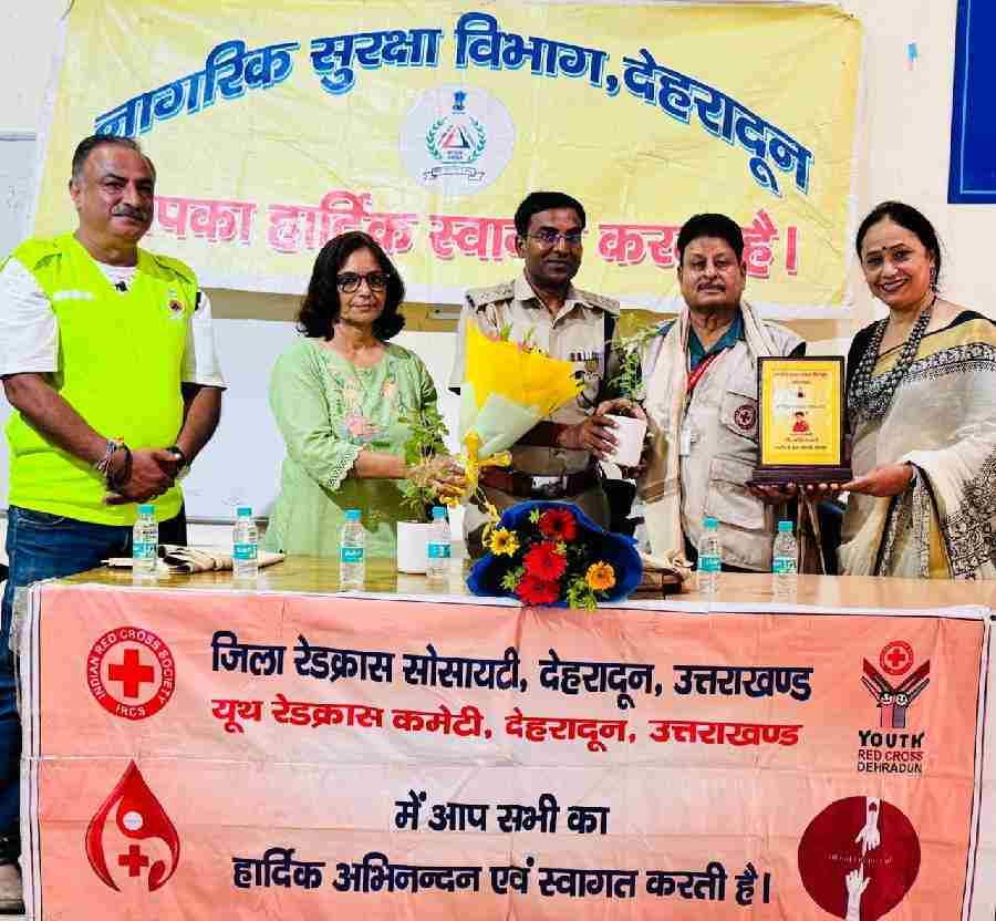 इस अवसर पर प्रमाणपत्र वितरण एवं सम्मान समारोह का आयोजन किया। प्रशिक्षण शिविर निदेशक व सिविल डिफेंस के डिप्टी कन्ट्रोलर एस के साहू द्वारा मुख्य प्रशिक्षक जिला रेडक्रॉस सोसायटी के रक्तदाता शिरोमणि डॉ० अनिल वर्मा को नि:शुल्क उत्कृष्ट प्रशिक्षण प्रदान करने के लिए *ना०सु०सं० “सर्टिफिकेट ऑफ एप्रीसिएशन”* तथा *155 बार रक्तदान करने के लिए *”सिविल डिफेंस रक्तदाता सम्मान -2025″* से विभूषित कियागया l