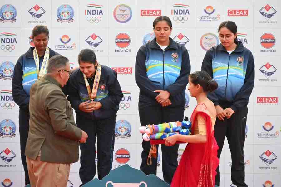 कैबिनेट मंत्री गणेश जोशी ने आज देहरादून स्थित महाराणा प्रताप स्पोर्ट्स स्टेडियम में आयोजित 38वें राष्ट्रीय खेलों के अंतर्गत तीरंदाजी प्रतियोगिता के विजेता खिलाड़ियों को सम्मानित किया। इस अवसर पर उन्होंने खिलाड़ियों को पुरस्कृत करते हुए उनके उत्कृष्ट प्रदर्शन की सराहना की और खेल के प्रति उनके समर्पण की सराहना की और खिलाड़ियों के उज्वल भविष्य की कामना भी की।