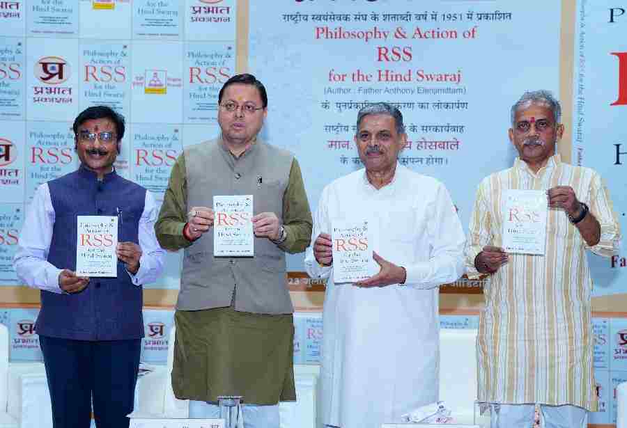 मुख्यमंत्री पुष्कर सिंह धामी ने आई आर डी टी  सभागार देहरादून में आयोजित कार्यक्रम में राष्ट्रीय स्वयंसेवक संघ पर पुर्नप्रकाशित पुस्तक के संस्करण फिलॉसोफी एंड एक्शन ऑफ़ आरएसएस फॉर हिन्द स्वराज का लोकार्पण किया। इस अवसर पर राष्ट्रीय स्वयंसेवक संघ के सरकार्यवाह,श्री दत्तात्रेय होसबोले , राष्ट्रवादी चिंतक एवं ‘प्रज्ञा प्रवाह’ विशिष्ट वैचारिक मंच के संयोजक,  श्री जे. नंदकुमार भी उपस्थित थे।