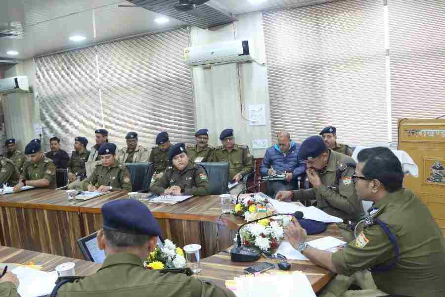 आज दिनांक: 15-12-24 को राजीव स्वरूप, पुलिस महानिरीक्षक गढवाल परिक्षेत्र द्वारा पुलिस कार्यालय स्थित सभागार में जनपद देहरादून के समस्त राजपत्रित अधिकारियों, थाना/शाखा प्रभारियों के साथ अपराध समीक्षा गोष्ठी की गयी। गोष्ठी के दौरान वरिष्ठ पुलिस अधीक्षक देहरादून द्वारा पुलिस महानिरीक्षक महोदय को जनपद में घटित अपराधों तथा पुलिस द्वारा चलाये जा रहे अभियानों के सम्बन्ध में जानकारी दी गई।
