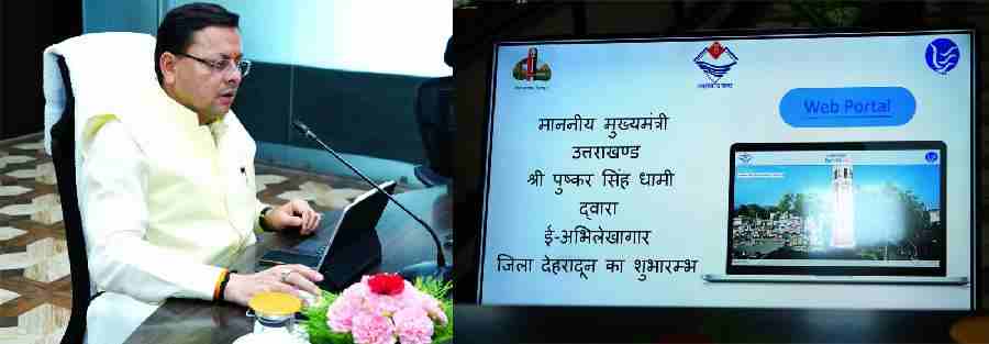जनपद देहरादून में ई-अभिलेखागार वेब पोर्टल का शुभारम्भ, सीएम ने तहसीलों के रिकार्ड स्केन कर पोर्टल पर अपलोड करने के दिये निर्देश, मुख्यमंत्री ने सी.एम. हेल्पलाइन 1905 की समीक्षा कर अधिकारियों को दिये जन समस्याओं के त्वरित समाधान के निर्देश