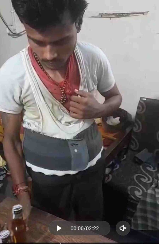 हरिद्वार तीर्थ नगरी है और यहां पर शराब और मांस की बिक्री नगर निगम क्षेत्र में प्रतिबंधित है यही वजह है कि यहां पर लोग बड़े पैमाने पर धन अर्जित करने के लिए शराब की तस्करी करते हैं और उसकी प्रतिबंधित क्षेत्र में छुपे रूप से बिक्री करते हैं, शराब की तस्करी करने और बिक्री करने को का एक ऐसा ही वीडियो वायरल हो रहा है जिसमें एक व्यक्ति खुद शराब की चलती फिरती दुकान बना हुआ है, यानी उसने अपने शरीर मे ही शराब के पव्वे छिपा रखे थे, उसने अपनी शर्ट के अंदर ही शराब के 48 पव्वे छुपाए हुए हैं और इसमें देसी और अंग्रेजी दोनों तरह की शराब थी,जिसे वह प्रतिबंधित क्षेत्र खासकर हर की पैड़ी क्षेत्र में घूम घूम कर लोगों को बेचा करता था ,पुलिस ने इस व्यक्ति को गिरफ्तार किया है और जब इसकी तलाशी ली गई तो इसकी इसकी शर्ट से 48 पव्वे शराब के बराबर हुए हैं।