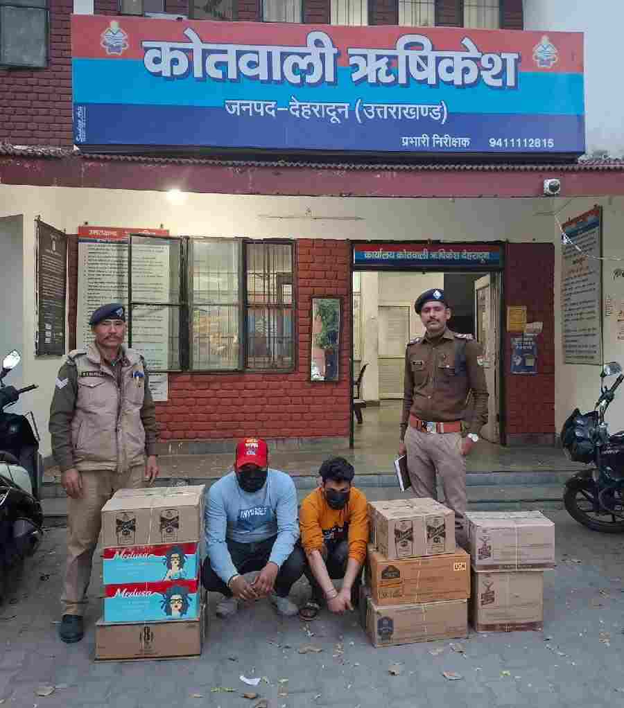 वरिष्ठ पुलिस अधीक्षक देहरादून द्वारा सभी अधीनस्थों को अपने-अपने क्षेत्रों में अवैध मादक पदार्थों/देसी शराब की तस्क्री में लिप्त अभियुक्तों चिन्हित करते हुए उनके विरूद्ध कठोर वैधानिक कार्यवाही किये जाने हेतु निर्देशित किया गया है। जिसके अनुपालन में जनपद के सभी थाना क्षेत्रों में लगातार चौकिंग अभियान चलाया जा रहा है। अभियान के दौरान कोतवाली ऋषिकेश पुलिस द्वारा थाना क्षेत्र में अलग-अलग स्थानो से 03 अभियुक्तो को अवैध शराब की तस्करी/विक्रय करते हुये गिरफ्तार किया। अभियुक्तो के कब्जे से 08 पेटी अवैध अंग्रेजी शराब तथा 02 पेटी अवैध बीयर बरामद की गयी। सभी अभियुक्तों के विरूद्ध आबकारी अधिनियम के अन्तर्गत अभियोग पंजीकृत किया गया।