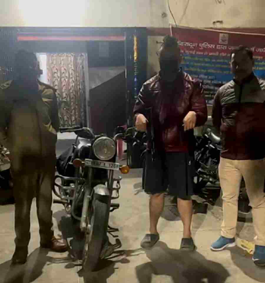 सोशल मीडिया पर वायरल वीडियो, जिसमें मोटरसाइकिल सवार एक युवक हाथ में पिस्टल नुमा चीज को पकड़ कर खतरनाक ढंग से मोटरसाइकिल को चलाता हुआ दिख रहा है। वीडियो का संज्ञान लेते हुए एसएसपी देहरादून द्वारा वीडियो में दिख रहे युवक के विरुद्ध आवश्यकता कार्यवाही के निर्देश दिए गए, जिस पर पुलिस द्वारा वीडियो में दिख रहे युवक के संबंध में जानकारी एकत्रित करते हुए मोटरसाइकिल सवार युवक शौर्य पुत्र गिर विजय डांडिया निवासी H- 322 नेहरू कॉलोनी, देहरादून उम्र 21 वर्ष को सार्वजनिक स्थान पर खतरनाक ढंग से वाहन चलाते हुए अपनी तथा दूसरों की जान खतरे में डालने पर हिरासत में लेकर उसके विरुद्ध पुलिस एक्ट में कार्यवाही की गई तथा अभियुक्त द्वारा इस्तेमाल की गई मोटरसाइकिल को एम०वी० एक्ट में सीज किया गया। वीडियो में अभियुक्त के हाथ में दिख रही पिस्टल नुमा चीज बच्चों के खेलने वाली पिस्तौल निकली, जिसे पुलिस द्वारा अभियुक्त के पास से बरामद किया गया।