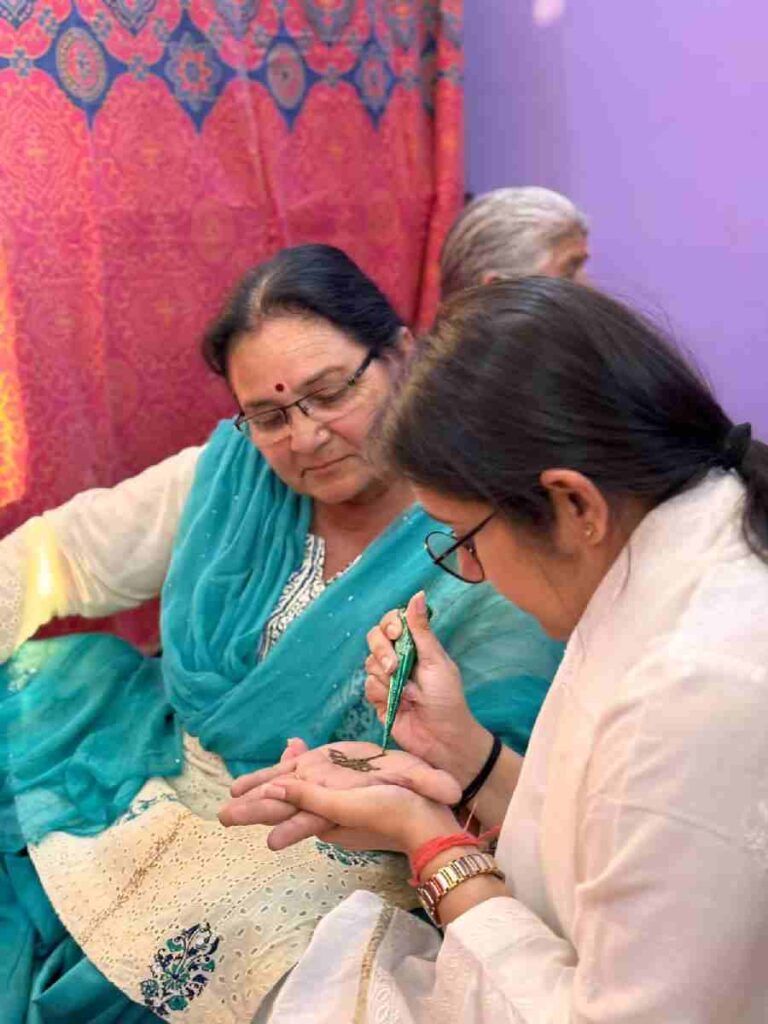 युवा मोर्चा राष्ट्रीय उपाध्यक्ष नेहा जोशी ने महिलाओं को मेहंदी लगाकर किया 400 पार का आह्वान